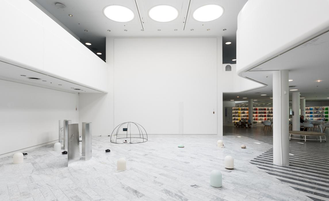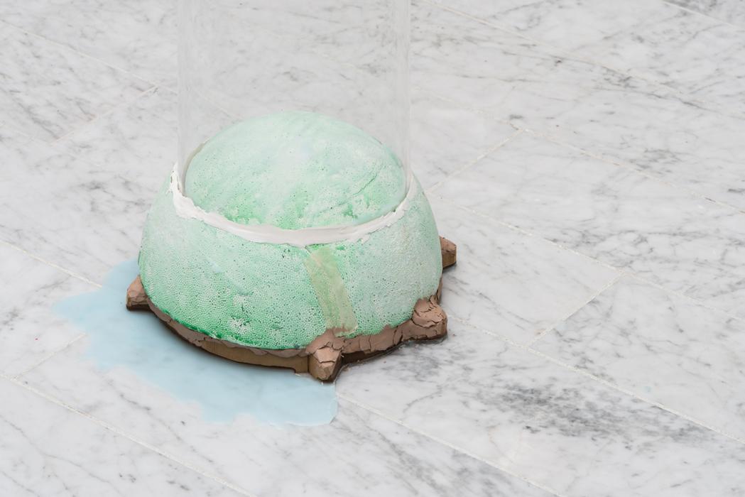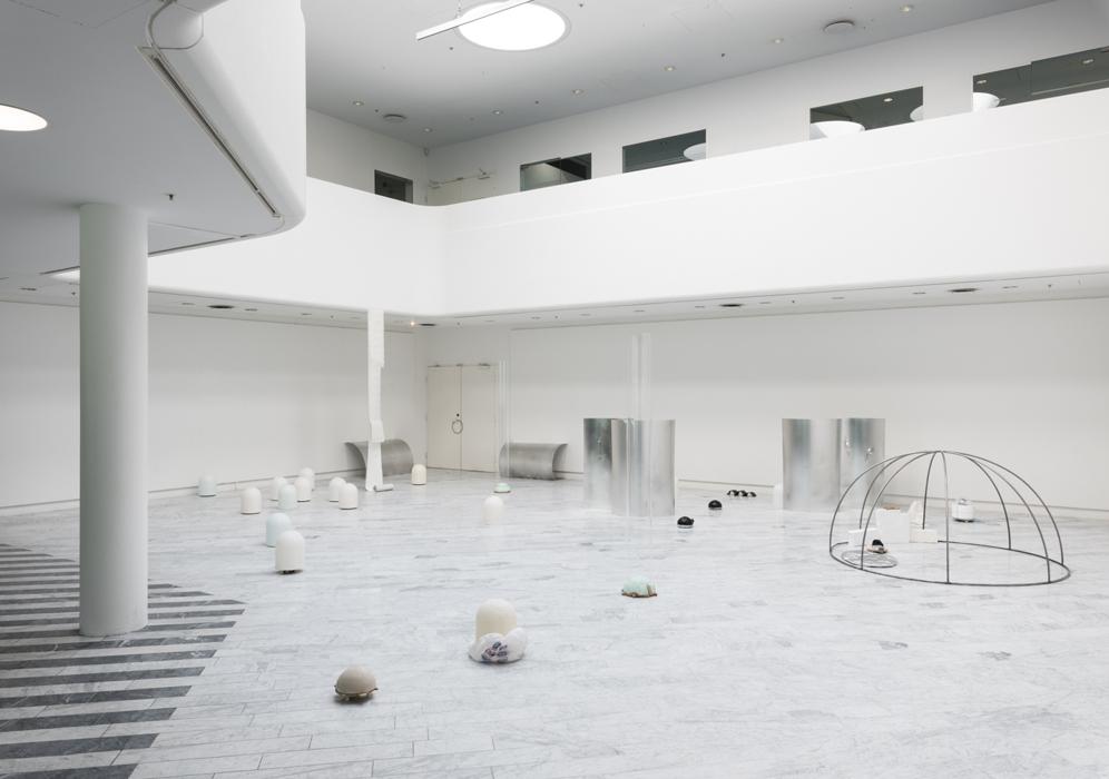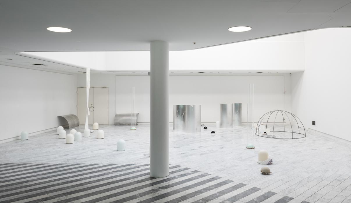 aluminium, steel, modelling wax, paraffin, beeswax, clay, MDF, wheels, plexiglas, plastic, bronze, styrofoam, video, vinyl, dummy surveillance camera, fabric, foam, laser-cut plywood, copper wire, spray-paint, pigment, raffia, plaster, chipboard, glad wrap