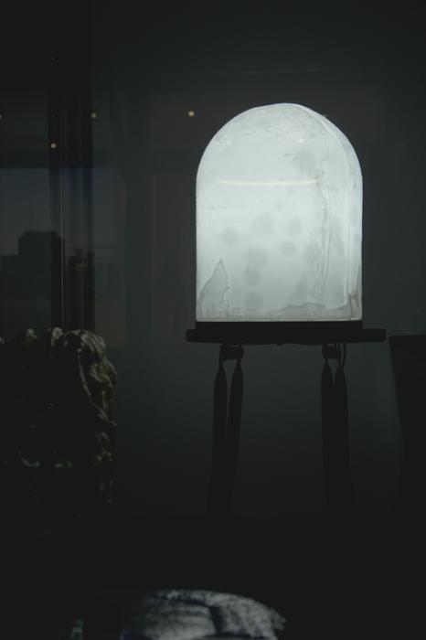Paraffin, beeswax, modelling wax, chipboard, LED bulb, light fixture, plastic tube, silicone