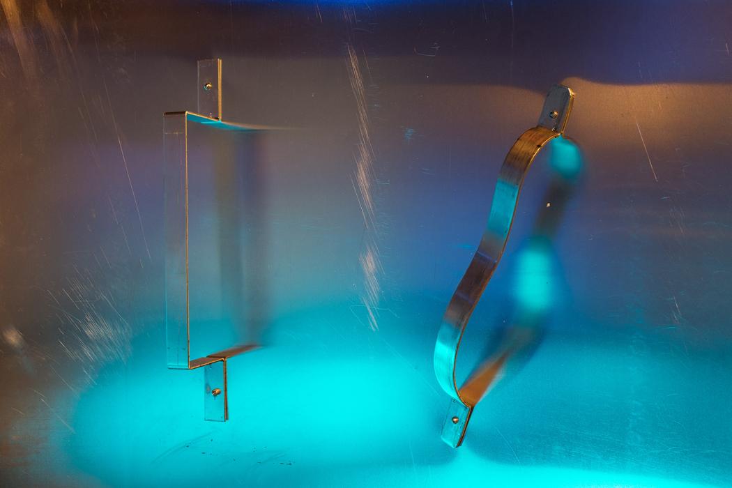 Curved aluminum sheet, rivets, shaped handles