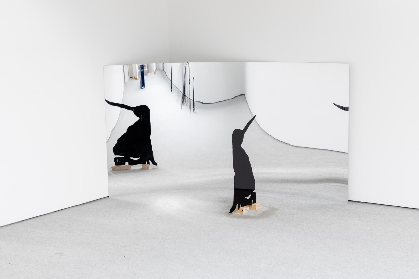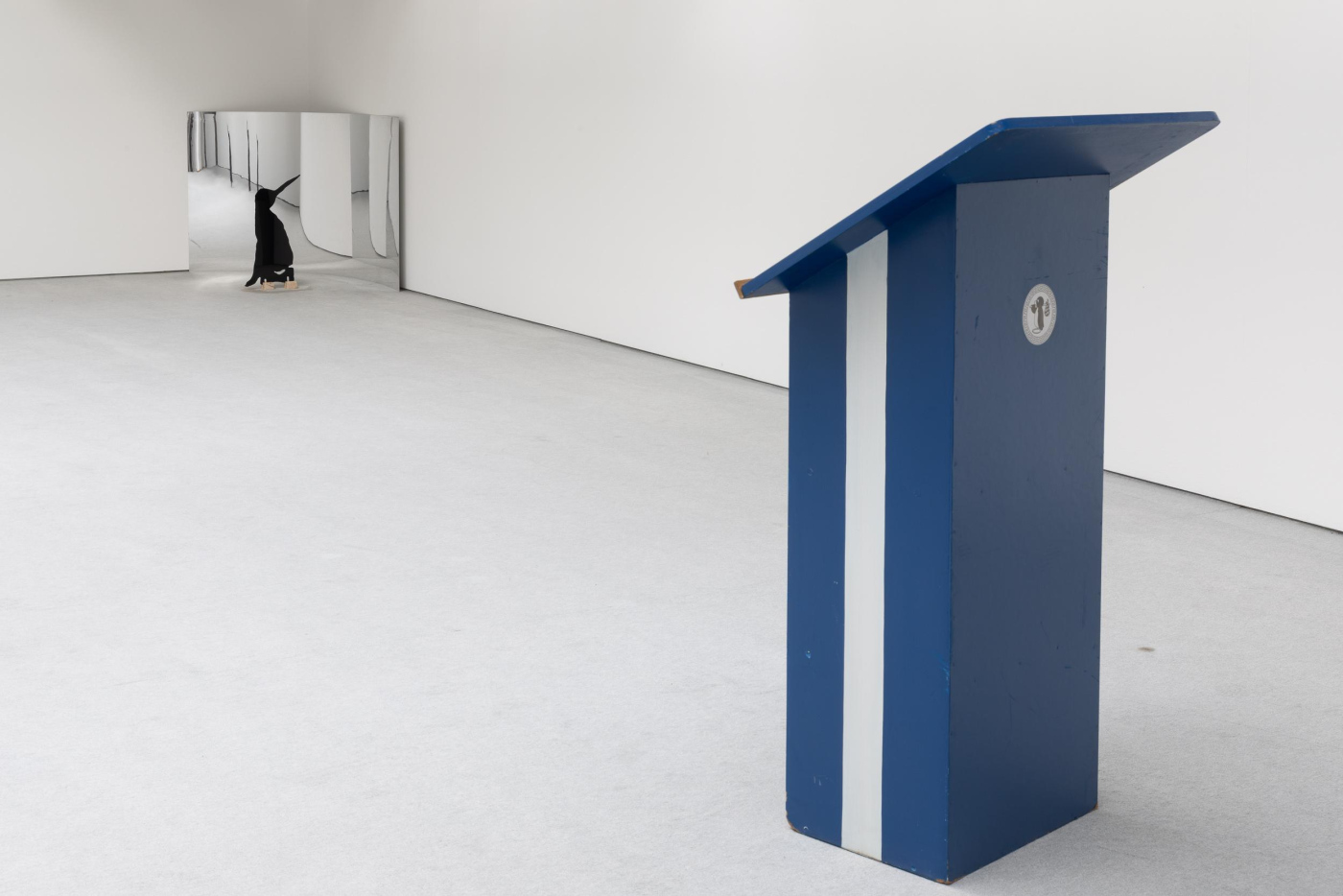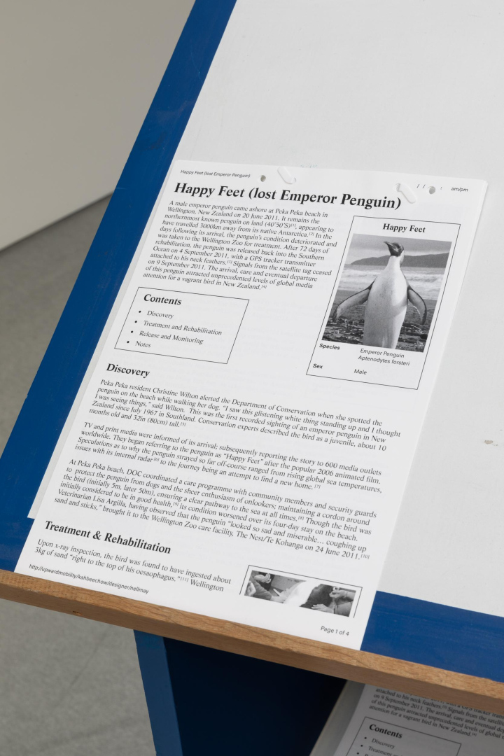 Laser-cut plexiglas, wooden stands, found stand, stickers
